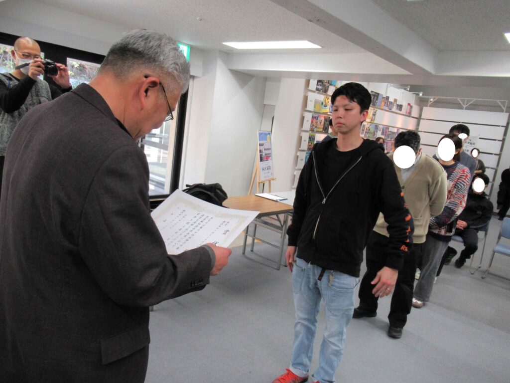 あすなろ交歓会は中止。作品展終了後に職員が代わりに賞状を受け取りました。