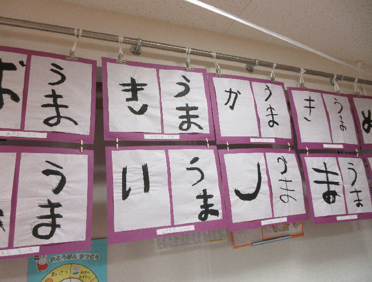 各クラス成長が感じられる作品をお部屋に飾ります。